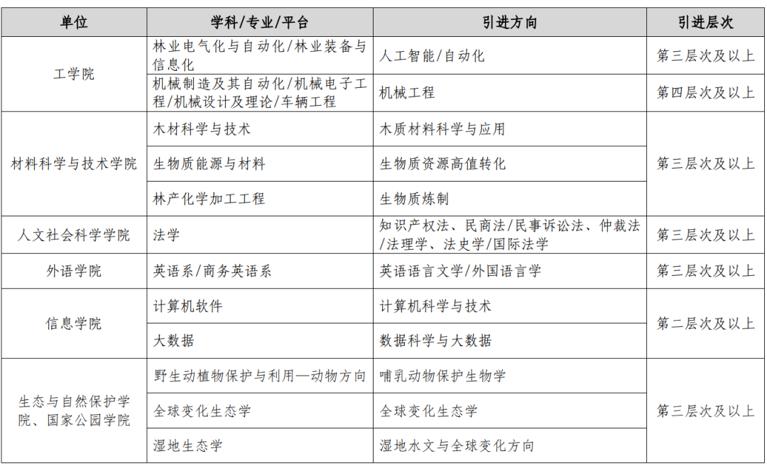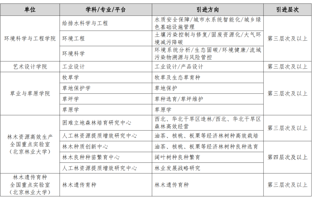 北京林业大学高层次人才引进岗位信息表