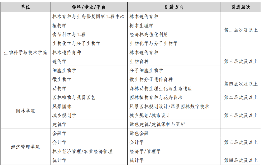 为进一步加强学校师资人才队伍建设,根据学校整体安排,现启动北京林业大学2024年度海内外高层次人才和优秀教师招聘工作,具体招聘安排如下: